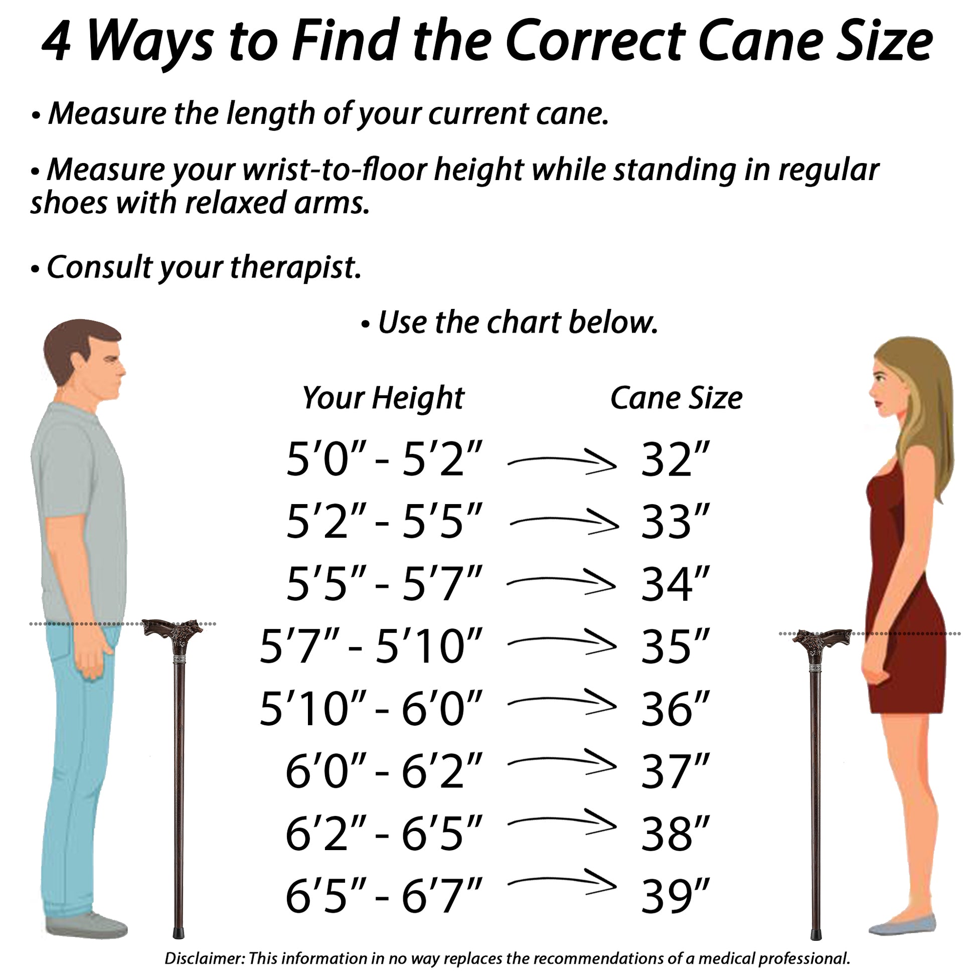 Disclaimer: Walking canes aren't intended to be used as a crutch for full weight support; canes are intended to improve balance.